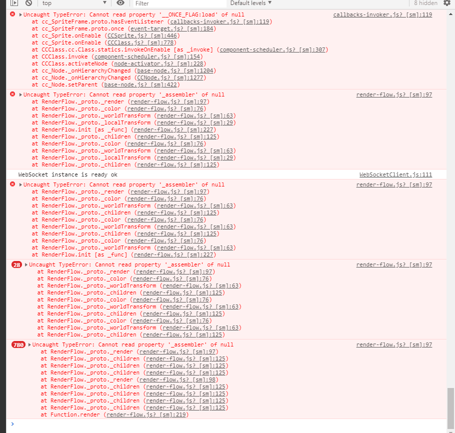 跟断点进去看了是某个节点的 Label 组件或 Sprite 组件的 ._renderComponent 为 null