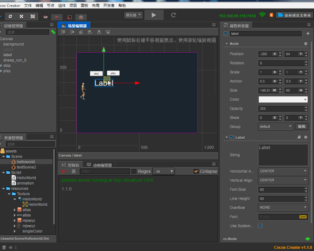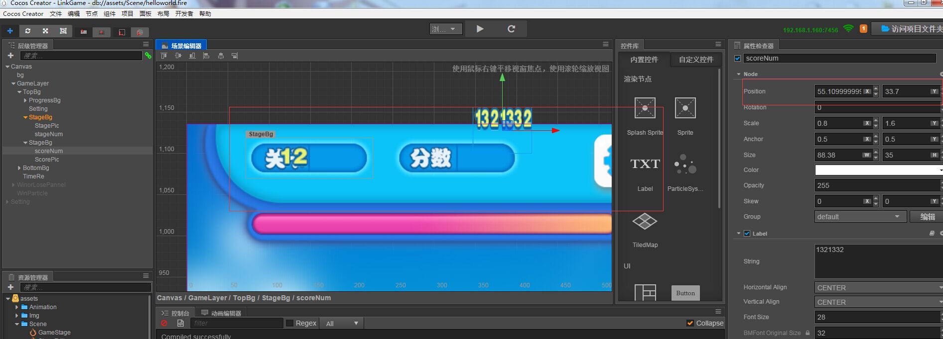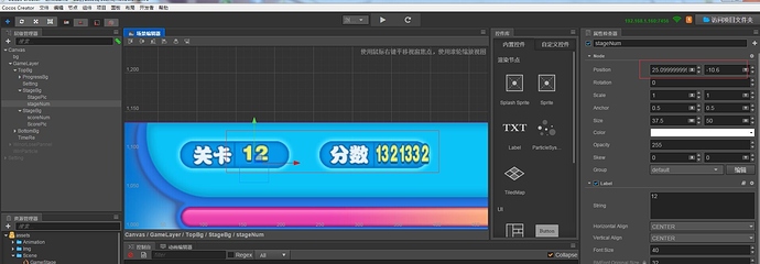 将label加到一个子节点上,比如我有一个小的分数背景,然后将lable加在这个背景上,让后再给label绑定一个widget组件,保存,然后切换切换到其他场景,然后再切回来,位置就变了