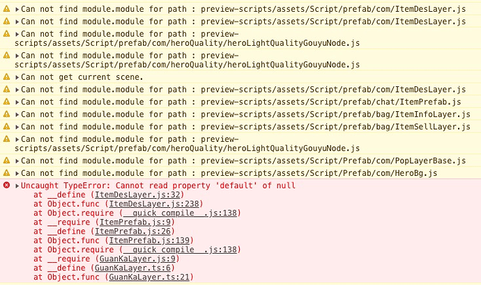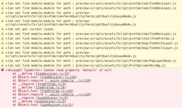 quick_compile.js:142 Can not find module.module for path : preview-scripts/assets/Script/prefab/ResUnLoadLayer.js