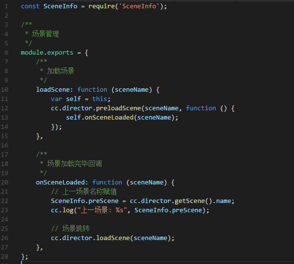 上面的代码应该没问题。我这边需要先预加载(预加载动画等),加载完毕进行场景跳转。