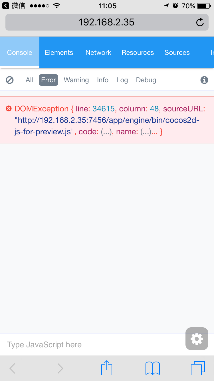我觉得可能是Cocos用的这个手机端Console插件eruda与cocos之间的兼容性问题。之前试过用HelloWorld工程简单地cc.log(this.node),eruda也会报错。如果游戏没问题可以先不管它。
