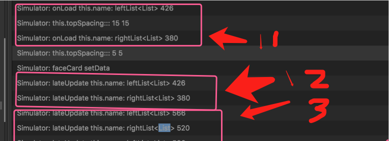第一个箭头为onLoad 第二个箭头为 第一次lateUpdate ,第三个箭头为第二次lateUpate了(这次才生效)