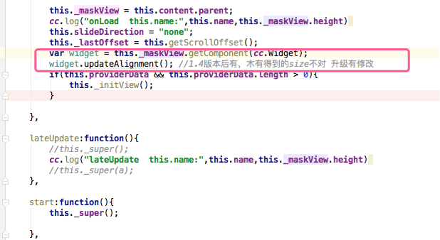 理由是 lateUpdate 本来就会在 widget 当帧生效后才触发。所以你不论有没有调用 updateAlignment,这里的结果都应该是一样的。
