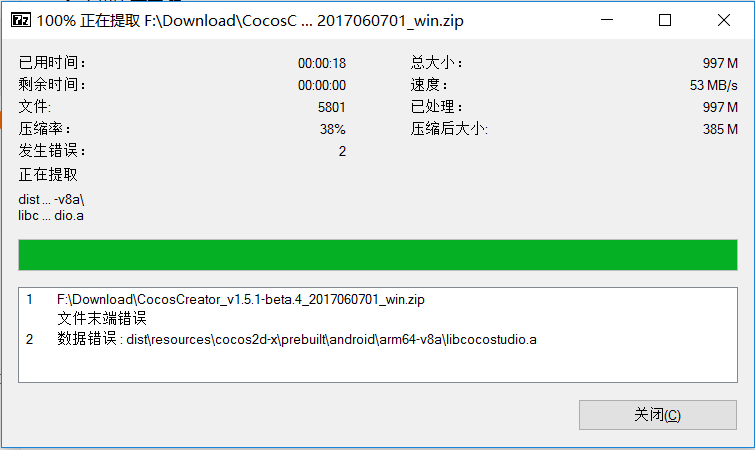 解压缩最新版的 creator 1.5.1-beat4 报错,如图。
