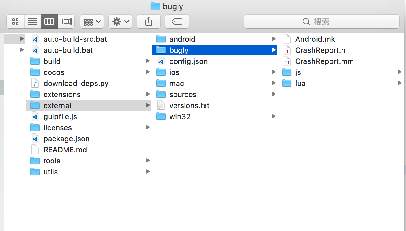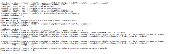 头文件找不到啊,你对着路径看看bugly/CrashReport.h在不在cocos2d-x/external里面啊
