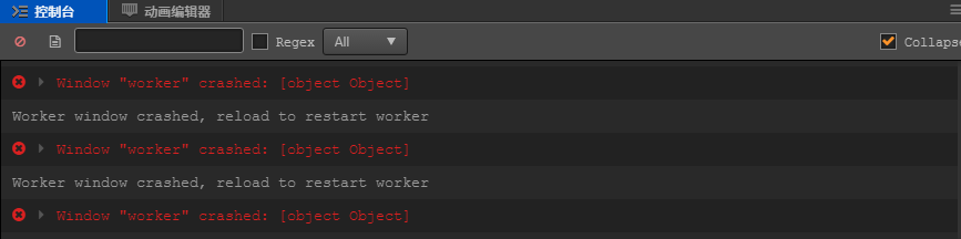 dist文件夹下某个程序一直在后台搞小动作,包括远程修改后台程序和私自上传隐私信息,360安全卫士不断发出警告,我当然是选择相信cocos的产品,一个反手就把360关了。然后编辑器就不断地刷这个错误,一直在刷,刷了一万条都不带停的,除了面板顶部的菜单按钮,什么都点不了,那个清空报错信息的按钮都点不了