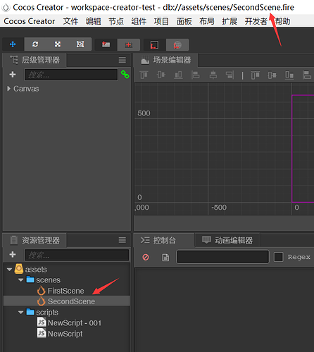 补充下,当编辑器打开的是 SecondScene,如果“项目设置中”设置的“初始预览场景”为 FirstScene,