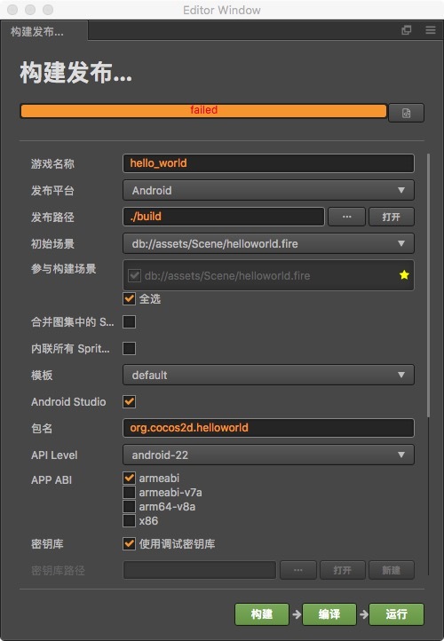通过creator创建的helloworld项目未做任何修改,sdk、ndk都是通过Android studio安装的,构建没问题,但是编译始终报这个错误,请问我该如何处理?