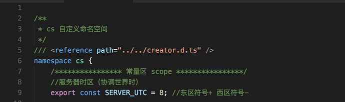 但是…这里有个问题,我在namespace.ts里,不能访问cc的命名空间了(虽然最终编译后不影响结果),这时候只要在顶部