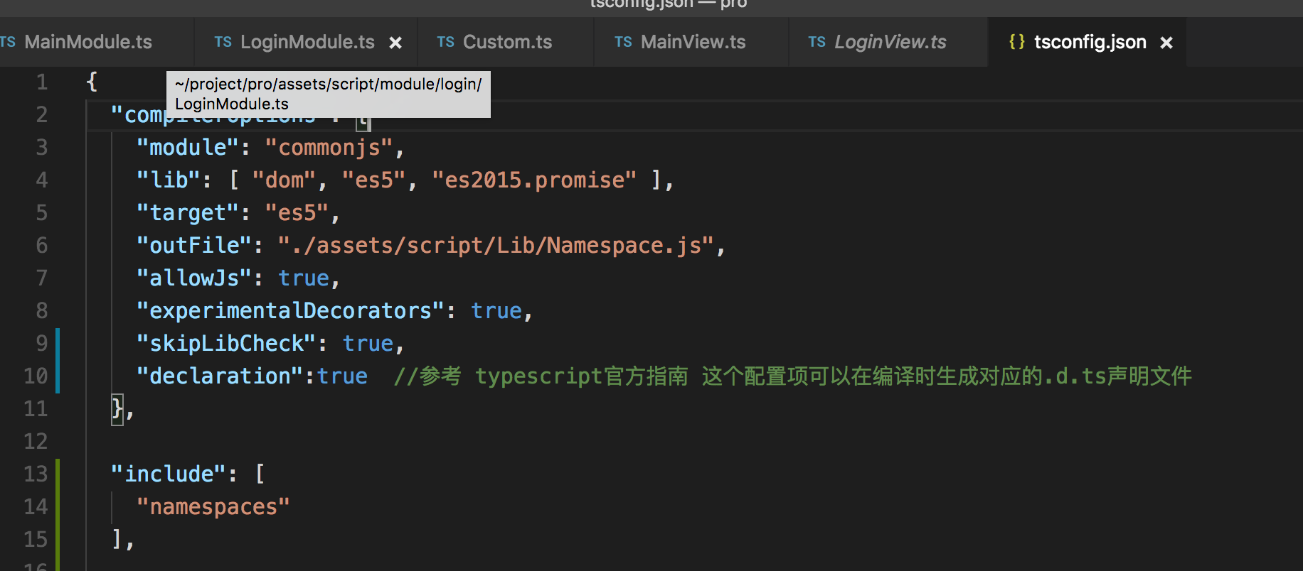 我觉得大家这么执着于要用全局(包括我),根源在于,ts不像c++的头文件,当我需要把一些公关模块组合include在一起的时候,不能做成common.h一次性把所有公关模块import进来,而要一个个去import,这种搞法是很让人抓狂的,今天来分享下怎么配置自动编译以及生成声明文件,以此来解决这类问题