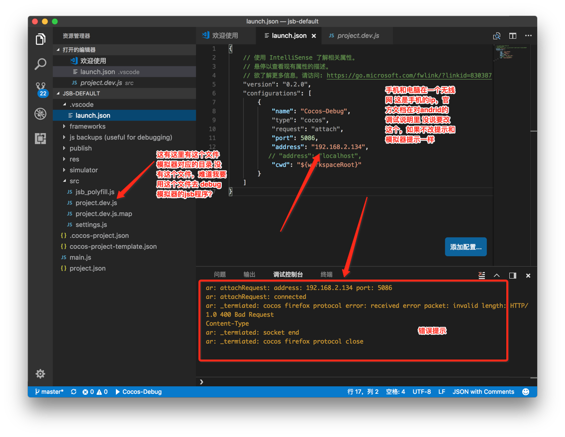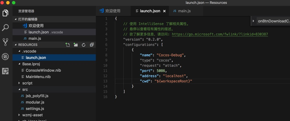 这个就没法断点了 ,然后 再去试试能不能启动 vscode 的 debug。attach到 jsb 程序里面(前面模拟器已经启动)