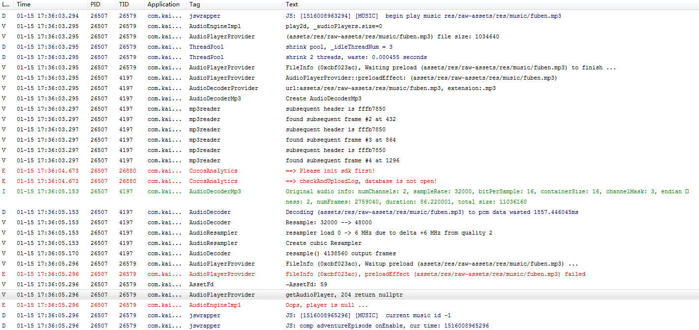 下图为android日志, 可以看出有时候成功有时候失败, 失败都是在开始播放的2秒之后