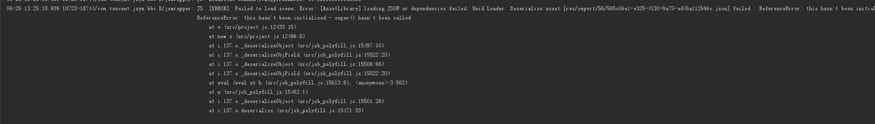 JS: [ERROR]: Failed to load scene: Error: [AssetLibrary] loading JSON or dependencies failed: Uuid Loader: Deserialize asset [res/import/56/565c06e1-e325-4130-9a75-ad45a112b96c.json] failed : ReferenceError: this hasn’t been initialised - super() hasn’t been called