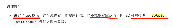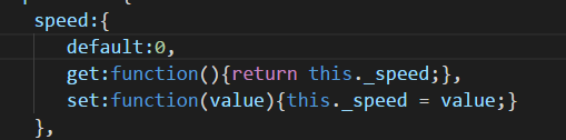 有歧义了,如果你default和get/set写在一起,那你取speed值的时候,你是拿默认的defalut的值呢,还是拿get里面返回的值呢, 所以你defalut和get/set是不能写在一起的