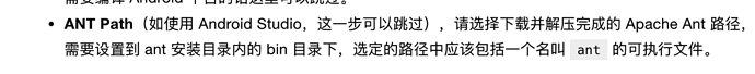 ant路径是需要配置的,如果你下载的android stuido没有ant文件,那你就需要单独进行配置了