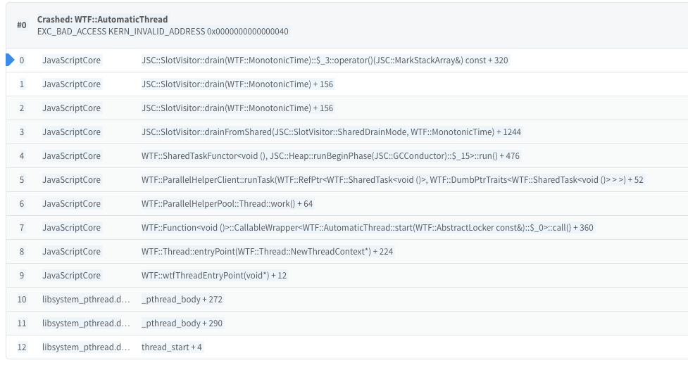 5 JavaScriptCore std::__1::__function::__func<WTF::AutomaticThread::start(WTF::Locker<WTF::LockBase> const&)::$_0, std::__1::allocator<WTF::AutomaticThread::start(WTF::Locker<WTF::LockBase> const&)::$_0>, void ()>::operator()() + 352