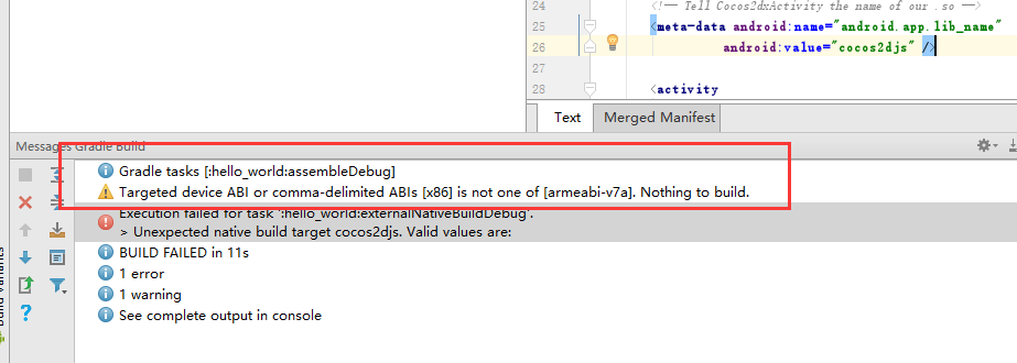 Error:Execution failed for task ‘:hello_world:externalNativeBuildDebug’.