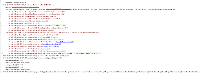 Receiver not registered: org.cocos2dx.lib.Cocos2dxHelper$BatteryReceiver@6de89b9