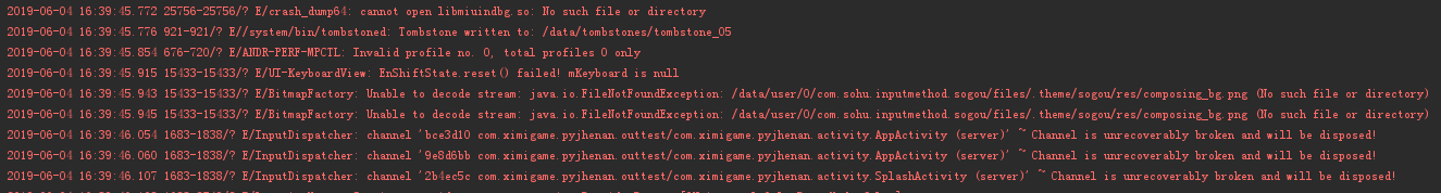 2019-06-04 17:01:22.734 25777-25777/com.ximigame.pyjhenan.outtest D/Cocos2dxActivity: onPause()