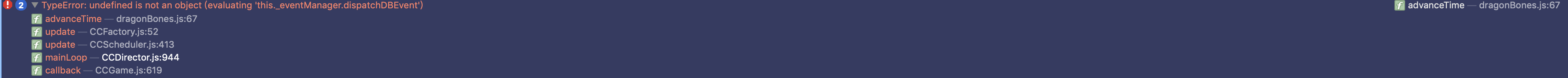 播放一个带有声音事件的dragonBones骨骼,到触发声音事件的时候就会报上面这个错误,如果引擎组懒得测试,可以直接用下面这个例子,简单的要死