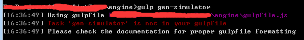 构建模拟器是在 cocos2d-x 目录下,不是在 engine 目录下哈。engine 目录是执行 gulp build 的。