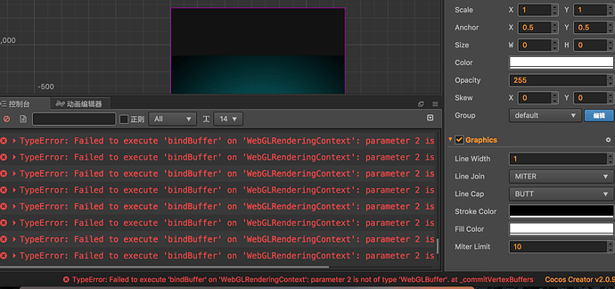点击任意一个预制体,再返回主场景后控制台持续报错TypeError: Failed to execute ‘bindBuffer’ on ‘WebGLRenderingContext’: parameter 2 is not of type ‘WebGLBuffer’,导致在graphic层级之后的精灵不能在编辑器里正常显示。