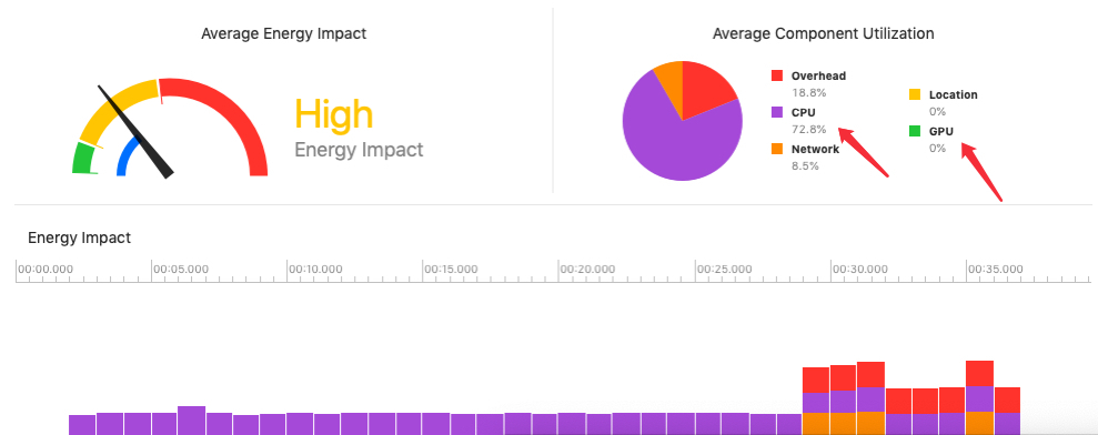 ,CPU占用极高,GPU占用为0%;帧数就2帧,基本点一下延迟很久,甚至闪退,同样代码在mini2上就很流畅