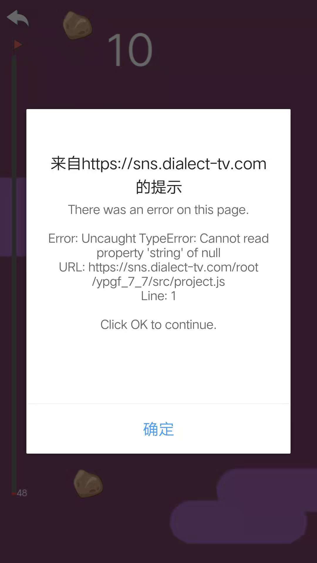 如图,游戏运行在App里的内嵌浏览器(X5内核)中 多款手机测试均未发现此问题(魅族T6、三星S7、VivoY31等) 在Vivo XPlay6中出现此问题 提示框是我通过JS全局报错打印出来的