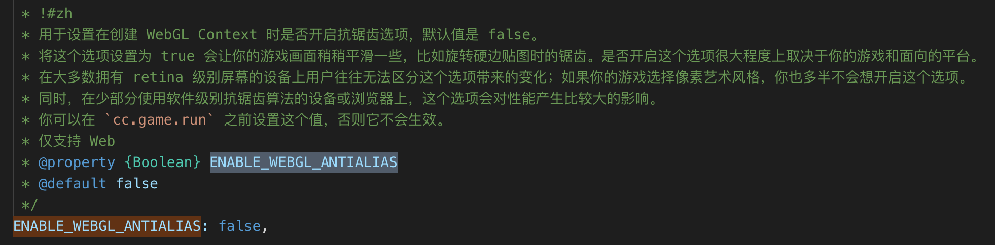 把cc.macro.ENABLE_WEBGL_ANTIALIAS = true;放在第一个场景的onLoad方法里?