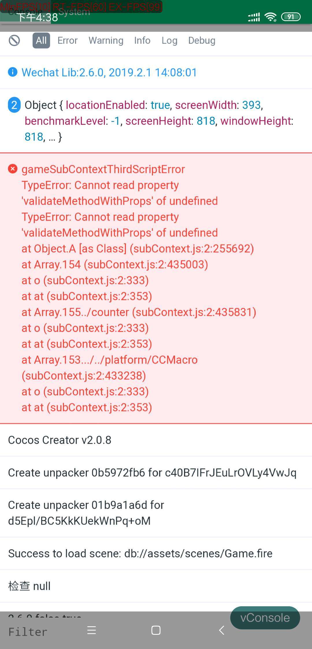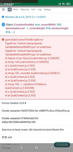 在2.0.8上,因为之前也用来发布过一个2.0.1的旧项目,那边只会出现排行榜偏移的情况(这个在该项目模拟器上也出现过这个问题),修改了子域的Canvas的适配模式之后就可以了,但没有想到真机上直接就报错黑屏了