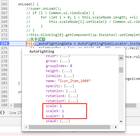 可以看到,预设中scale是0.4,对应的prefab文件也确实是0.4,但onload函数中就变成1了