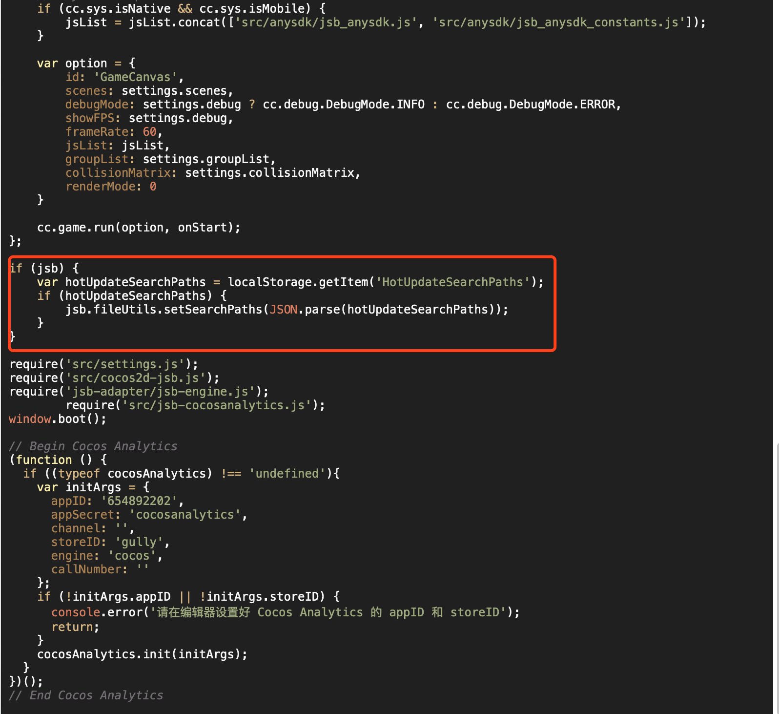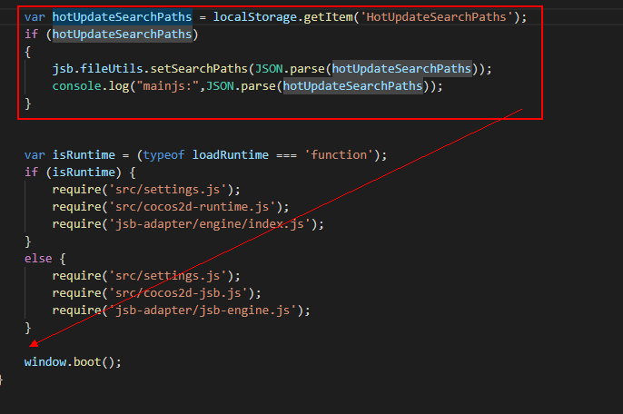 var srcPath = localStorage.getItem(‘HotUpdateSearchPaths’);