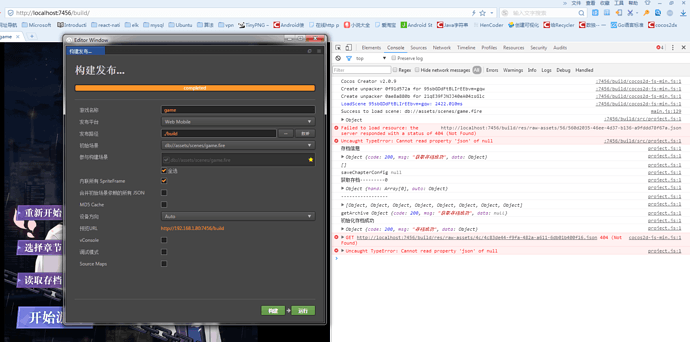 2.0.9的引擎 打包web-mobile 后 里面找不到json文件,并且报错