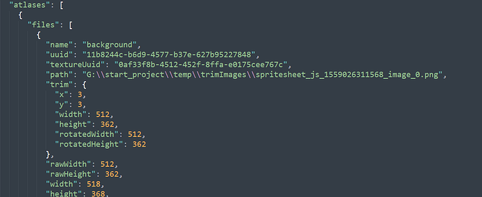 大家好!刚接触creator的自动图集,遇到了点困惑:我现在想要计算自动图集的空间利用率,原本在2.1.1版本中点击自动图集的preview后,会在temp/TexturePacker/preview目录下生成对应的info.json文件,里面的内容非常详细,包含图集内每一个sprite的尺寸、旋转等信息,如下: