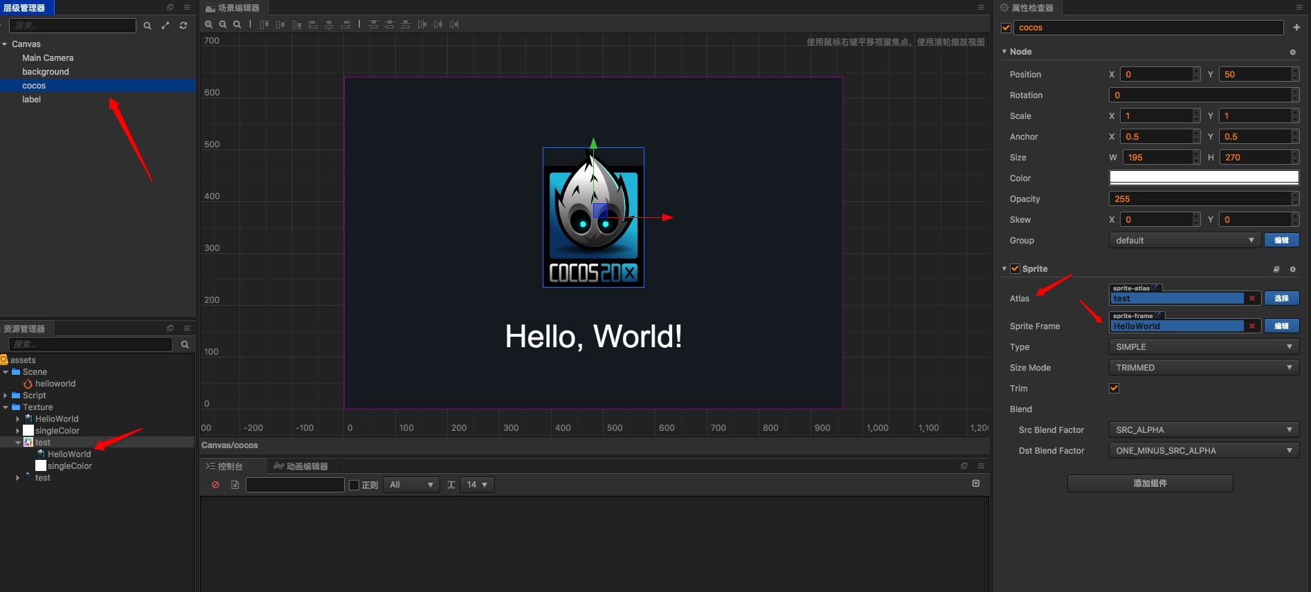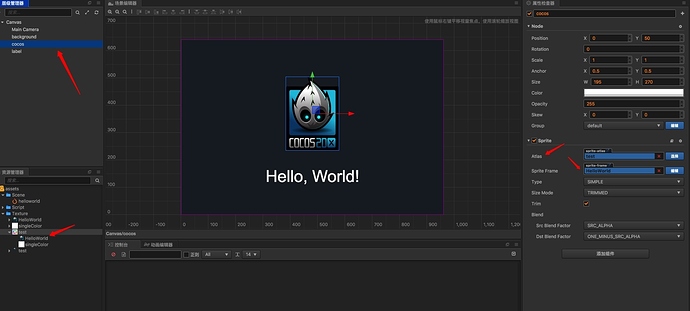如图我自己新建了另一个工程放了两个sprite和一个label