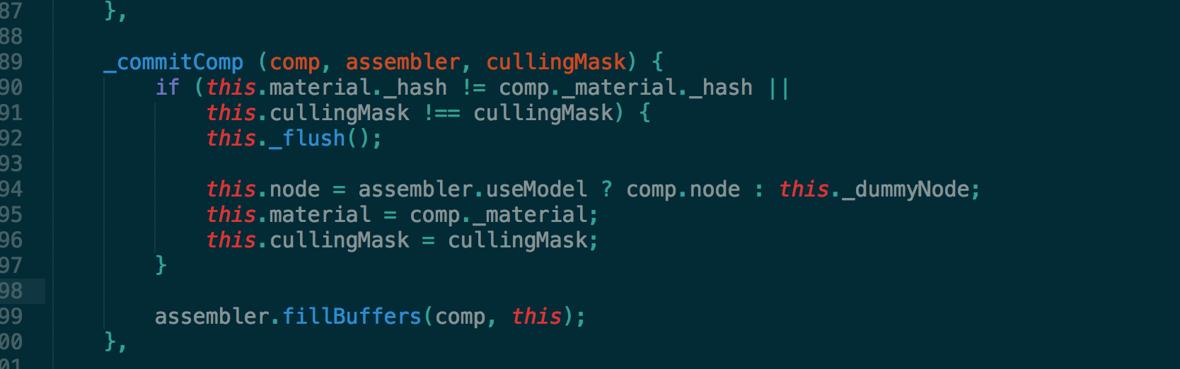 这里看了下判断材质的哈希或者说cullingmask是否相等,不等的情况下直接flush这个时候会往scene中增加一个要渲染的model否则