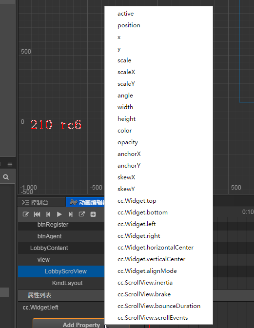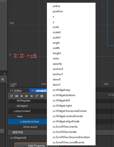 2.1.0.rc6 动画编辑器属性优化了还是丢了?