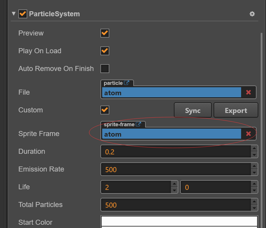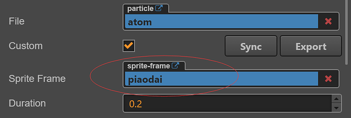 发现编辑器中粒子系统组件的属性中有一个属性叫Sprite Frame, 这个值全都被重置成了atom。