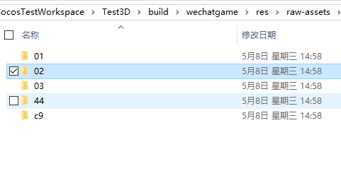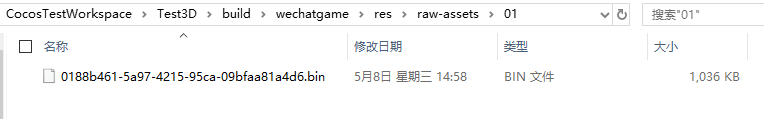 raw-assets里面,除了02这个目录,其它四个目录都有.bin文件。但我明明只有一个FBX呀。