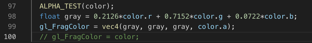 比如一张白色的图片,我只是修改了node的颜色。这时设置成灰度状态的时候,不管你的node设置的是什么颜色。最后显示出来的sprite都是纯白色。