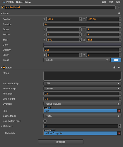 lable组件的设置如图,当文本只有一行的时候没有问题,但是当文本有多行的时候,前面行的文字都看不清了,求引擎组大佬看看!!!