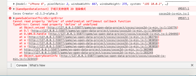 使用官方示例 https://github.com/cocos-creator/demo-wechat-subdomain/archive/1.x.zip 在creator 2.1.2版下发布微信开发域,使用微信开发者工具打开报错