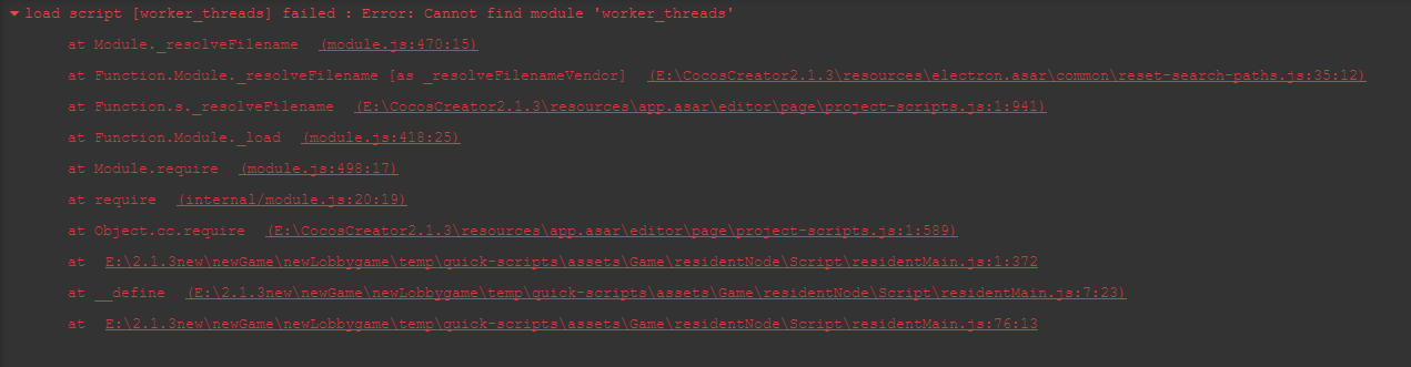 2.1.3编辑器报错 Error: Cannot find module 'worker_threads'
