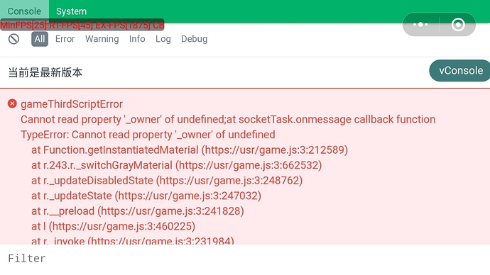 从2.0.10升级到2.1.3发布facebook 小游戏,出现严重bug,异常信息如下: