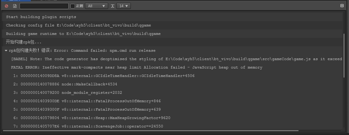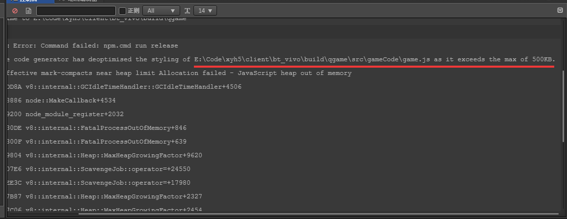 版本2.1.3分包后构建vivo小游戏包时,子包大小限制500k