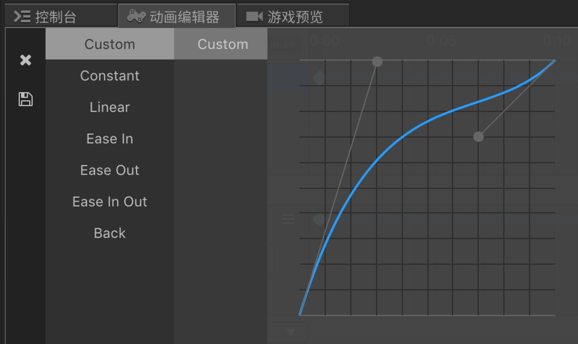 動畫編輯器中的貝茲曲線無法使用
