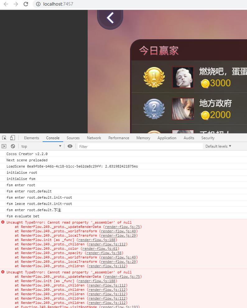 使用2.2.0版本,运行21点游戏demo时报错,直接就报Uncaught TypeError: Cannot read property ‘_assembler’ of null,也没告诉具体是哪里报错,不知道怎么排查,还有就是开两个IDE切换时,属性检查器那里会不停的刷新好几遍才停下来。