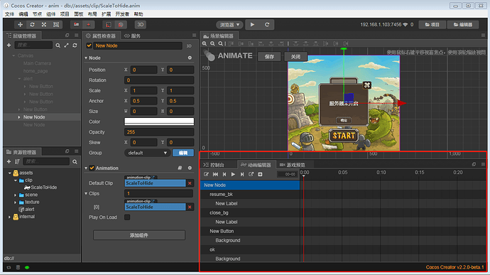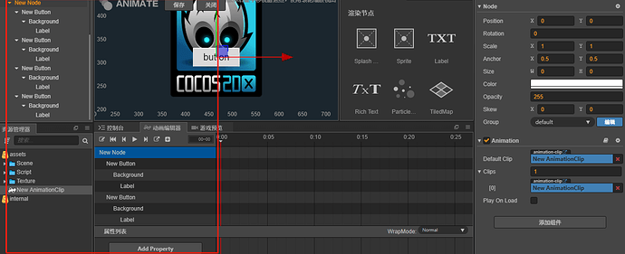 版本就是2.2.0 beta1 你添加完3个按钮后,选择一下其他node,在选择回来,就出现了.刚添加完button是没问题的.需要切换一下当前选择的node