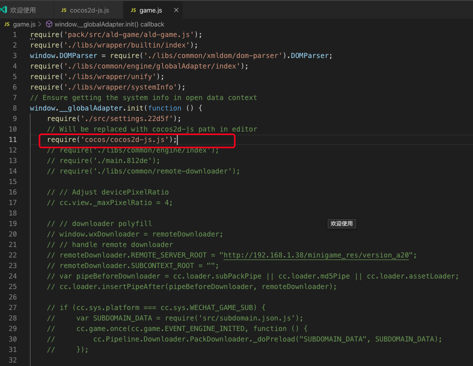 第一个场景都没看见就闪退了, require(‘cocos/cocos2d-js.js’);就闪退,跟内存没什么关系,在2.0.10都是没问题的