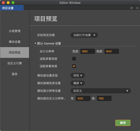 编辑器使用模拟器预览确实会有这个问题,后面我们会修复一下这个问题。如果要改变模拟器的分辨率,现在先麻烦在项目预览的模拟器设置里面设置一下